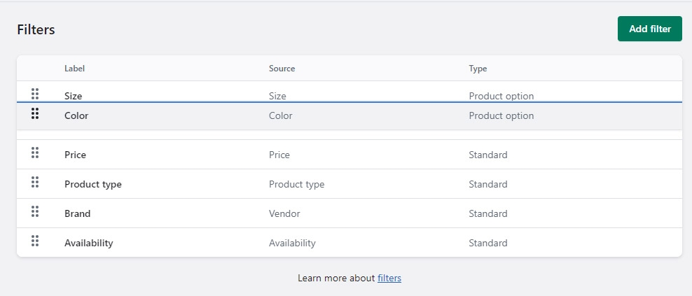 Manage Products filters position and style from section. Adjust sidebar look from Filters and Sidebar