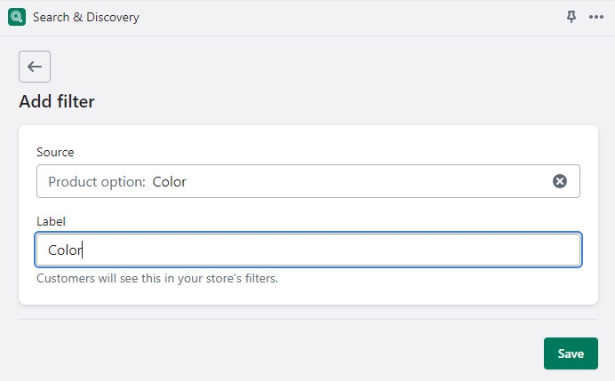 Now click on Source box and select all filter options that you would like to add for products filters and click save.