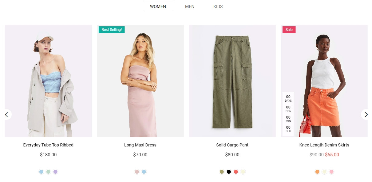 Use this section to display products from different collection in tabs on home pages or inner pages.